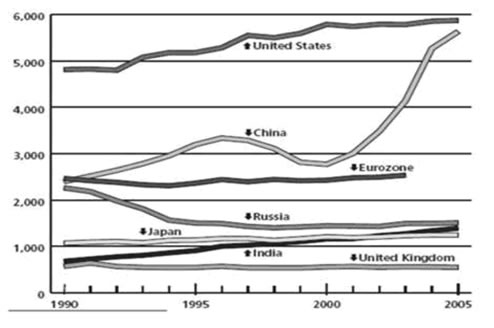 2012تا 5% کاهش دهند. شکل (1)انتشار گاز دی اکسید کربن، از سال 1990 تا 2005در اقتصاد های بزرگ جهان را نشان می دهد ]14[. ایالات متحده از امضاء پروتکل خود داری کرد. درصد انتشار دی اکسید کربن ایالات متحده 22% از سال 1990تا 2005رشد پیدا نمود. از زمان امضاء پروتکل، انتشار ژاپن 16% ،انتشار اروپا از اواسط دهه 1990شروع به افزایش نمود. انتشار انگلستان بخاطر جای گزینی سوخت زغال با گاز دریای شمال در یک روند ثابت باقی مانده است.