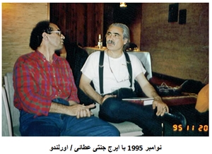 نوامبر سال ۱۹۹۵ محمد مختاری سفری فرهنگی به امریکا وکانادا داشت. در این سفر چند روزی میهمان کانون فرهنگی شهرمان ومن بود ، گفت و شنود های مفصلی در زمینه های فرهنگی و سیاسی با هم داشتیم ، بیش از ۱٨ ساعت گفت و گو ی ضبط شده ، چند فیلم ویدیوئی ، تعدادزیادی عکس و مجموعه ای یادداشت های پراکنده حاصل دیدار ۱۰ روزه ی او در اورلندو است . من همان روزها هم تردید نداشتم که گنجینه ای گرانبها جمع آوری می کنم اما هرگز تصور نمی کردم حدودسه سال بعد درچنین فصلی گورزادها جان شریف این ذخیره ی کمیاب فرهنگ و هنر و سیاست میهنمان بربایند. آن روزها نگاه ها و در فکرفرو رفتن ها و نجابت روشنفکرانه اش دوست داشتنی و یگانه می نمود. به ظاهرش خیلی توجه نکرده بودم ، اما وقتی خبر خفه کردن اش آمد این عکس ها و آن گردن کشیده و بلند با سیب آدم برجسته اش ، و اینکه چگونه موجودی توانست بر گلوی این " قناری موزون" طناب بیاندازد و صدای نجیبانه ی روشنفکری ِ میهنم را خفه کند، دست از سرم برنمی دارند. نمی دانم " ذهن از کدام نقطه بیاغازد، تا با عذاب نیامیزد ؟ " :
